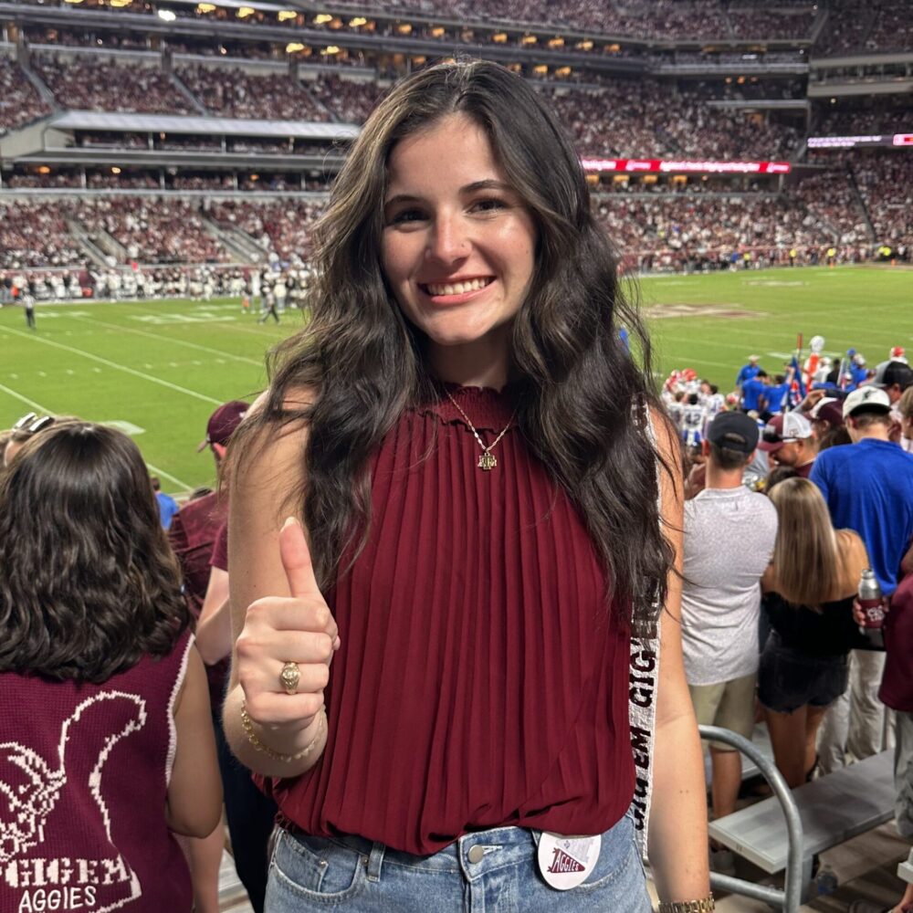 Maiah’s favorite Aggie tradition is the Wildcat, and she plans to continue saying WHOOP! every time anything remotely A&M-related is brought up in conversation.
